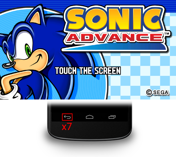 During the TOUCH THE SCREEN prompt, press 7 times on the BACK button of the Android navigation bar.