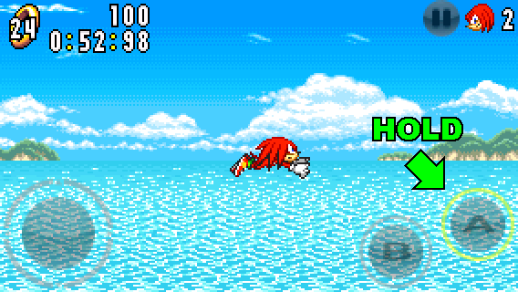 Swimming underwater works just like gliding, except Knuckles can't attack while swimming.