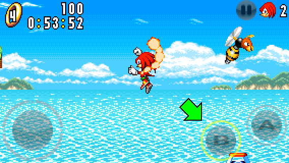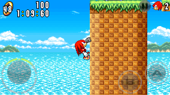 While hanging on the wall, you can make Knuckles climb up or down with the circle pad and jump off the wall by pressing the A button.