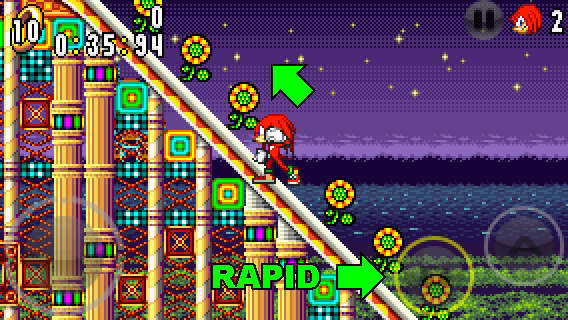 If the Spin Dash isn't powerful enough to climb a long uphill slope, you can still climb it by performing punch attacks.