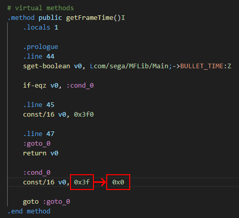 First, you need to decompile the game's APK file to access the game's code. Then, all you have to do is to put a value to 0 in the getFrameTime() method of the MainState smali file located in the MFLib folder.