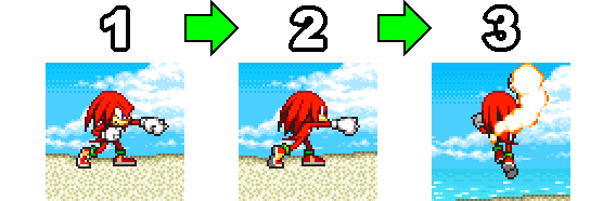 These moves allow Knuckles to attack in front of him while standing still or moving slowly.