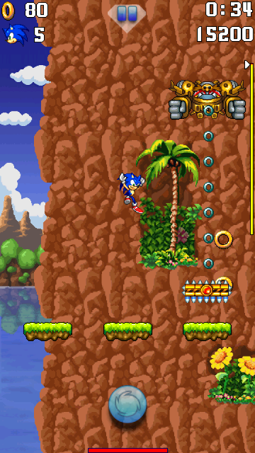 The playable character (like Sonic) jumps automatically by spinning in a ball, and they stop spinning when he falls.