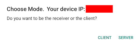 If you want to be the receiver, select SERVER and wait for the other player to insert you device IP.