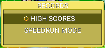There are 2 types of records: The HIGH SCORES and the SPEEDRUN MODE records.