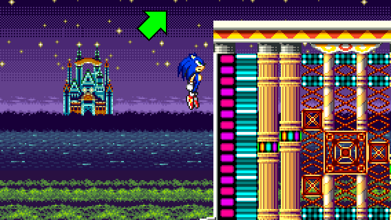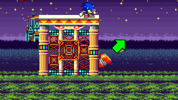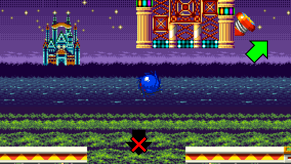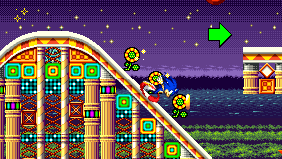 If you fell off during RECOVERY 1 and you don't want to take the flipper, you can still reach the pinball slide by taking momentum from a Spin Dash to the right.