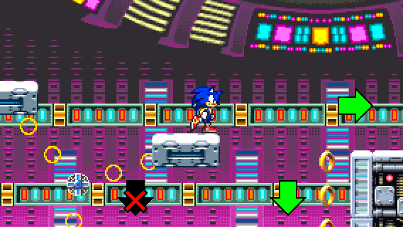 When taking the red spring, you can either go to the right, or take the warp cannon to collect rings.