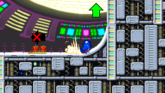 Instead of taking the dash panel, build a lot of speed from a Spin Dash to reach the top of the wall.