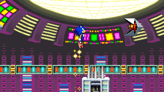 Traverse the dangerous obstacles. Be careful of moving spikes and Mogu badniks, or else you will fall.