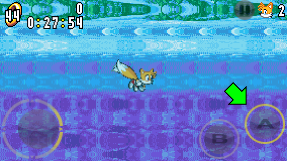 Tails can also dog-paddle underwater. Press the A button while jumping to start swimming.
