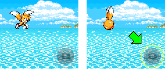 Tails can attack foes and break item boxes with his tails while flying. While flying, touch your target from below or next to it.